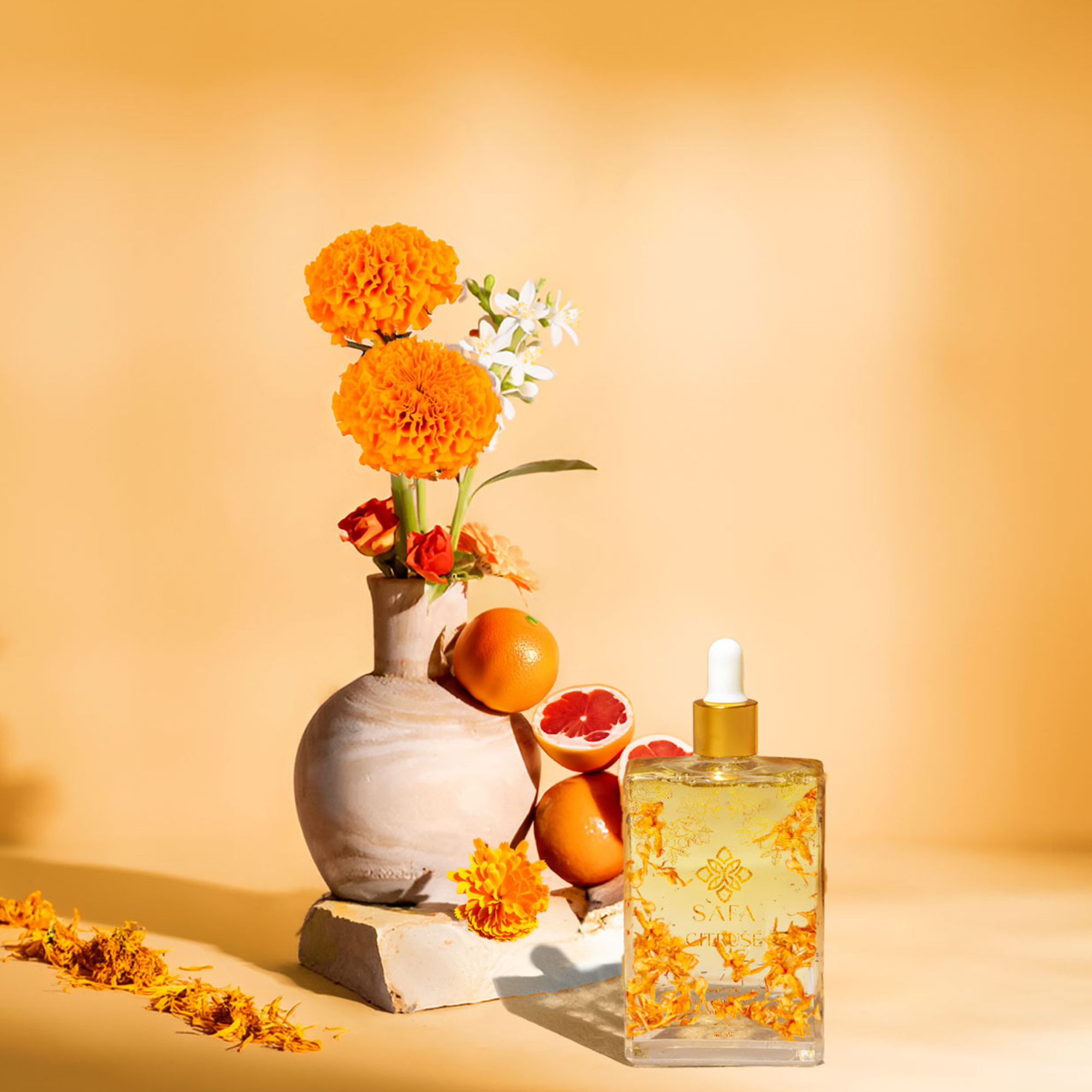 The Citrusé Oil blends Grapefruit, Italian Bergamot, Egyptian Neroli, and Marigold Petals to illuminate and rejuvenate your skin, providing a radiant glow and essential nutrients with a refreshing citrus aroma.